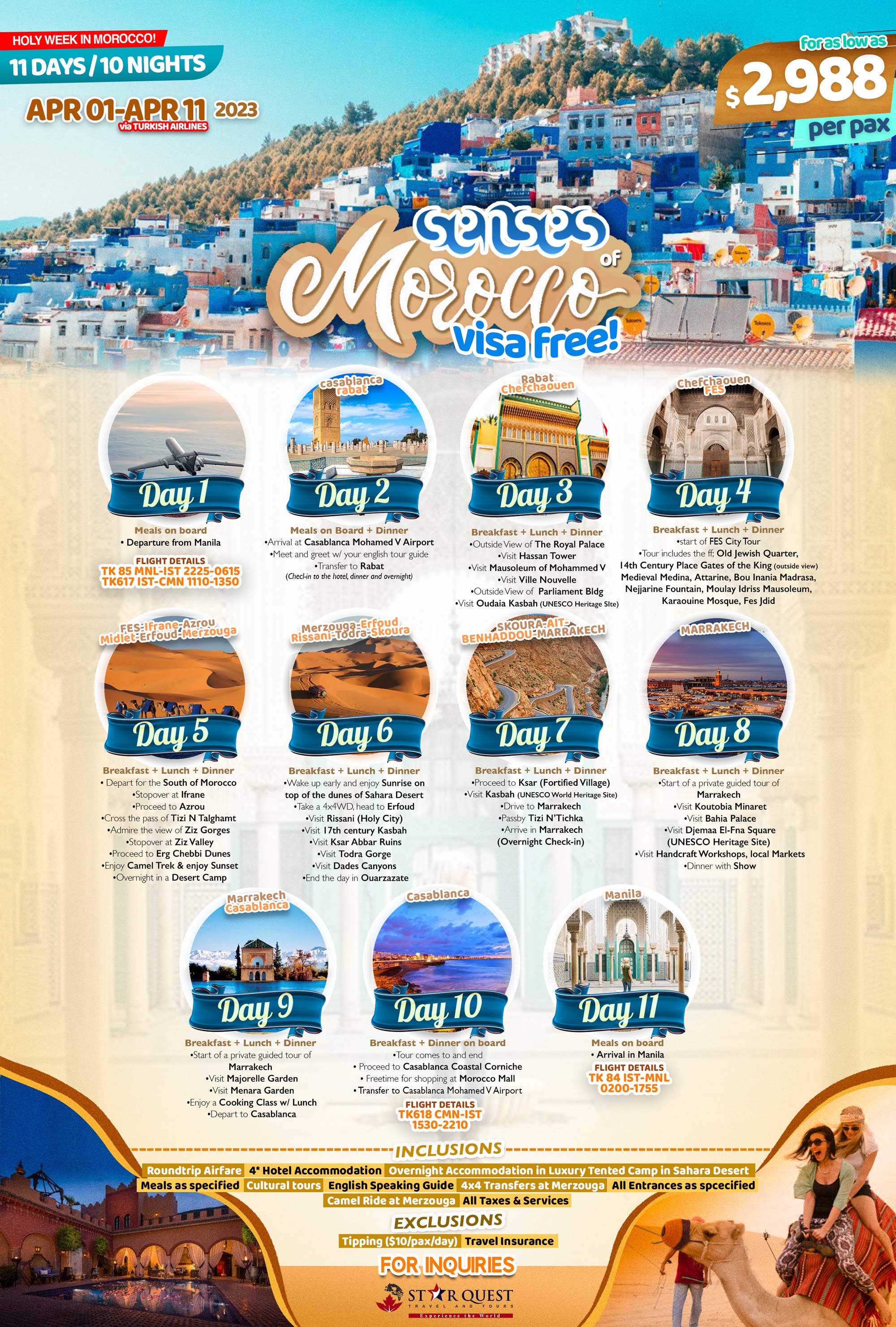 | Senses of Morocco(11D10N) | 2988 | USD | |