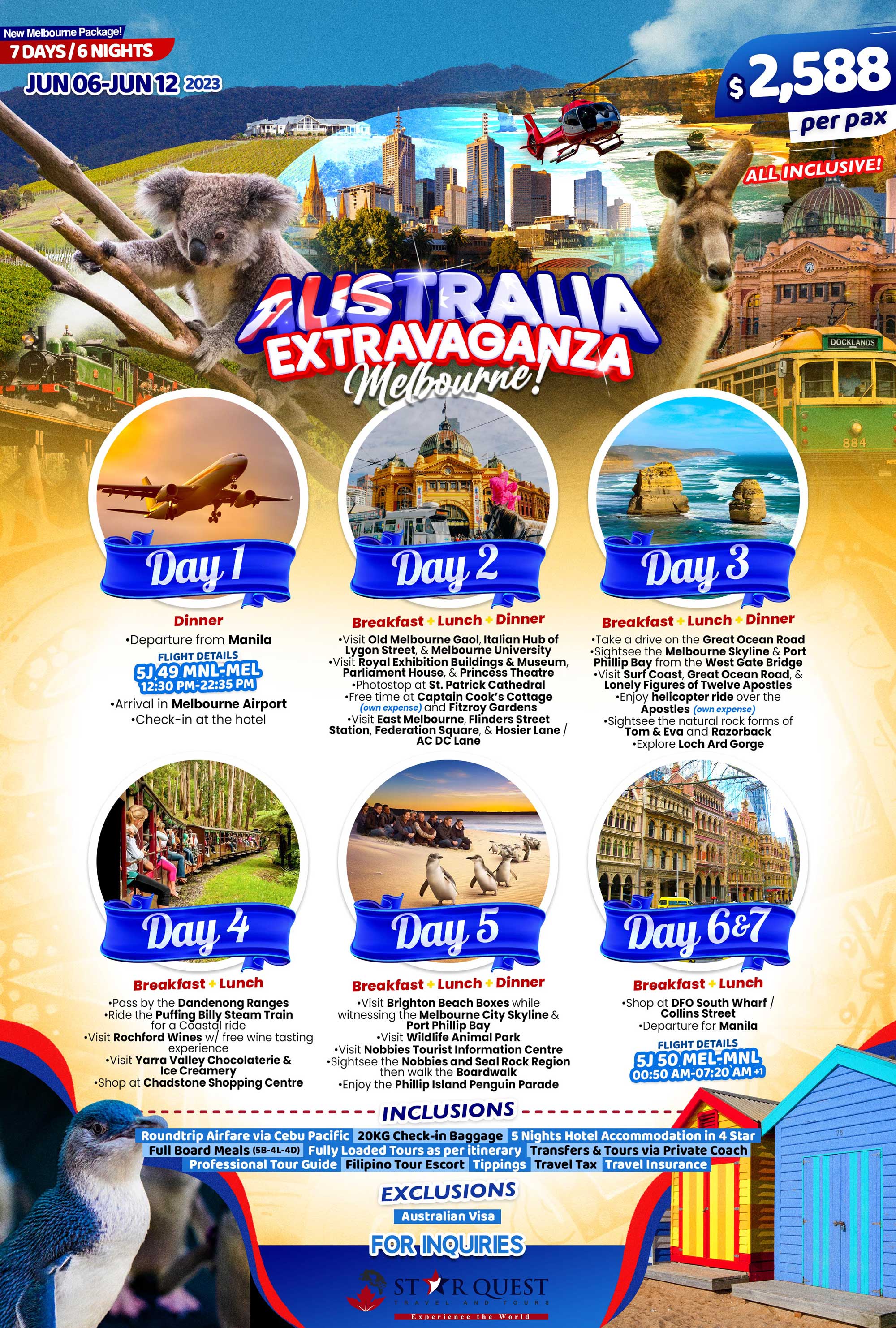 | Australia Extravaganza Melbourne! (7D6N) | 2588 | USD | |