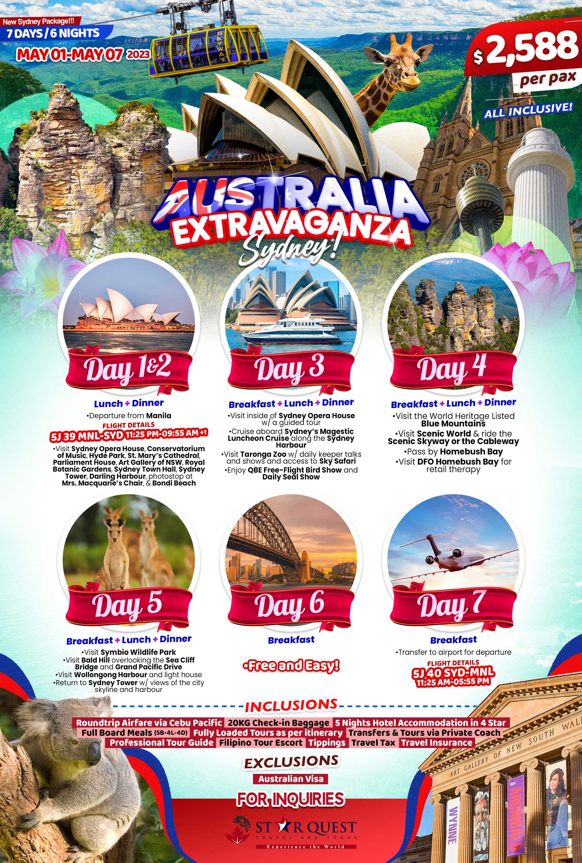 | Australia Extravaganza Sydney! (7D6N) | 2588 | USD | |
