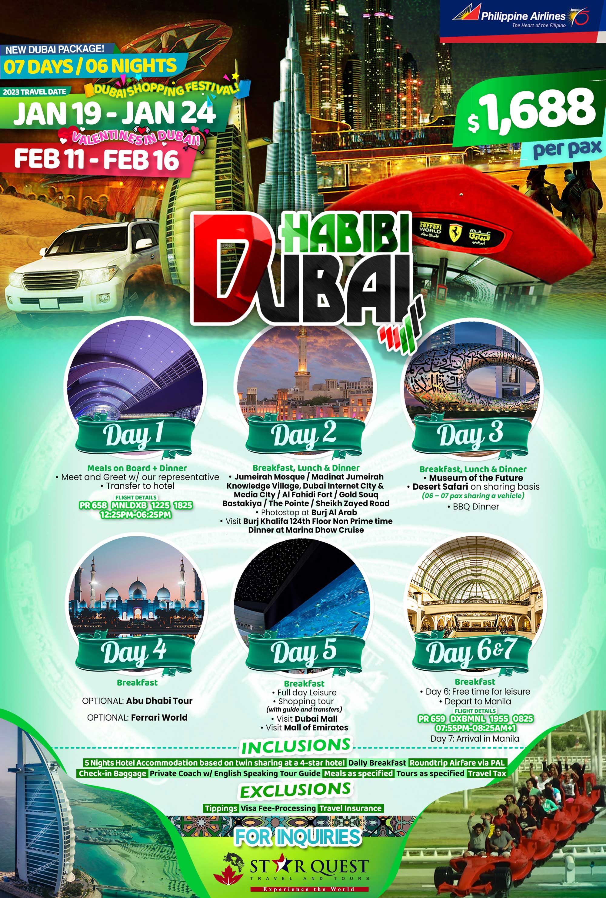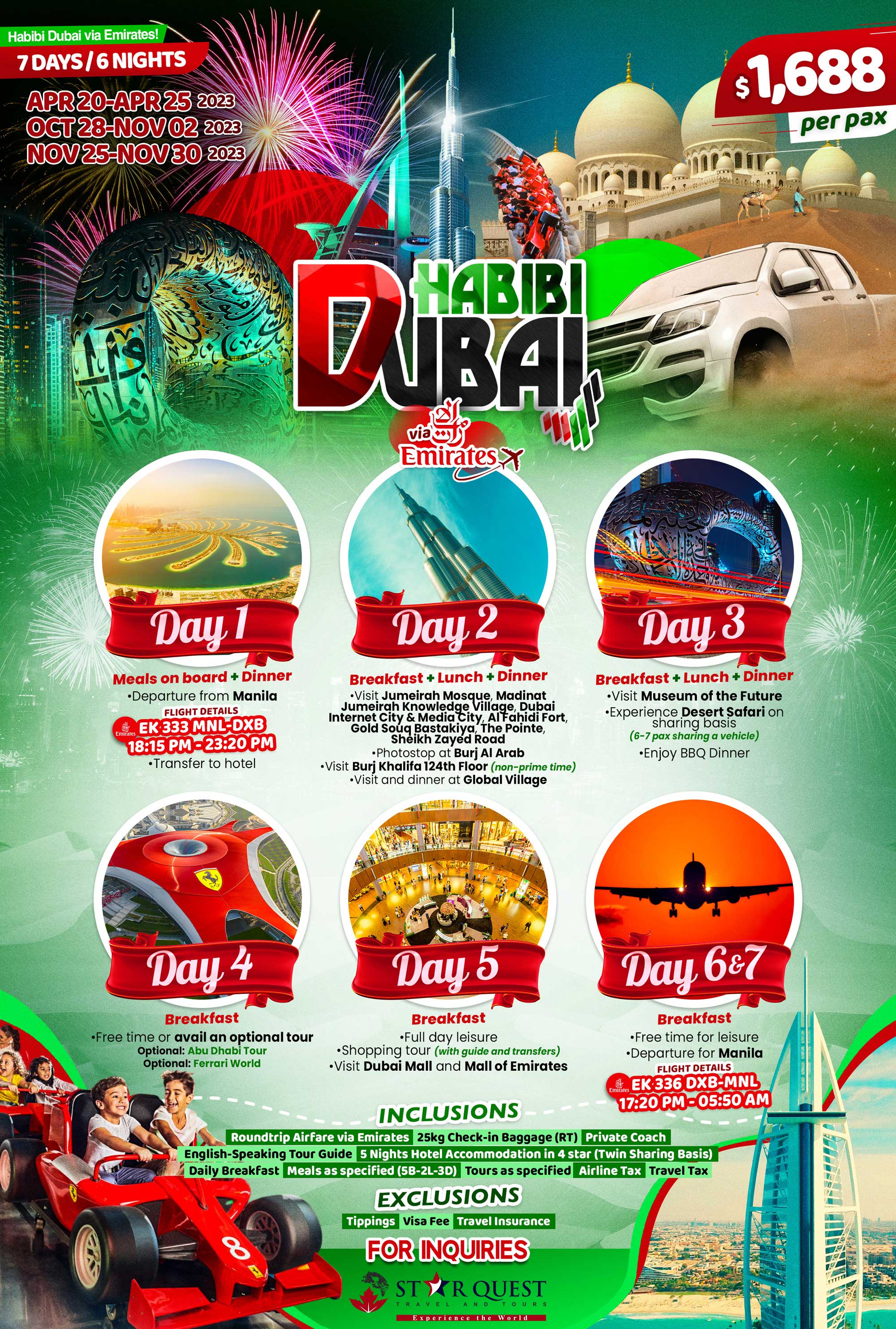 | Habibi Dubai via Emirates (7D6N) | 1688 | USD | |