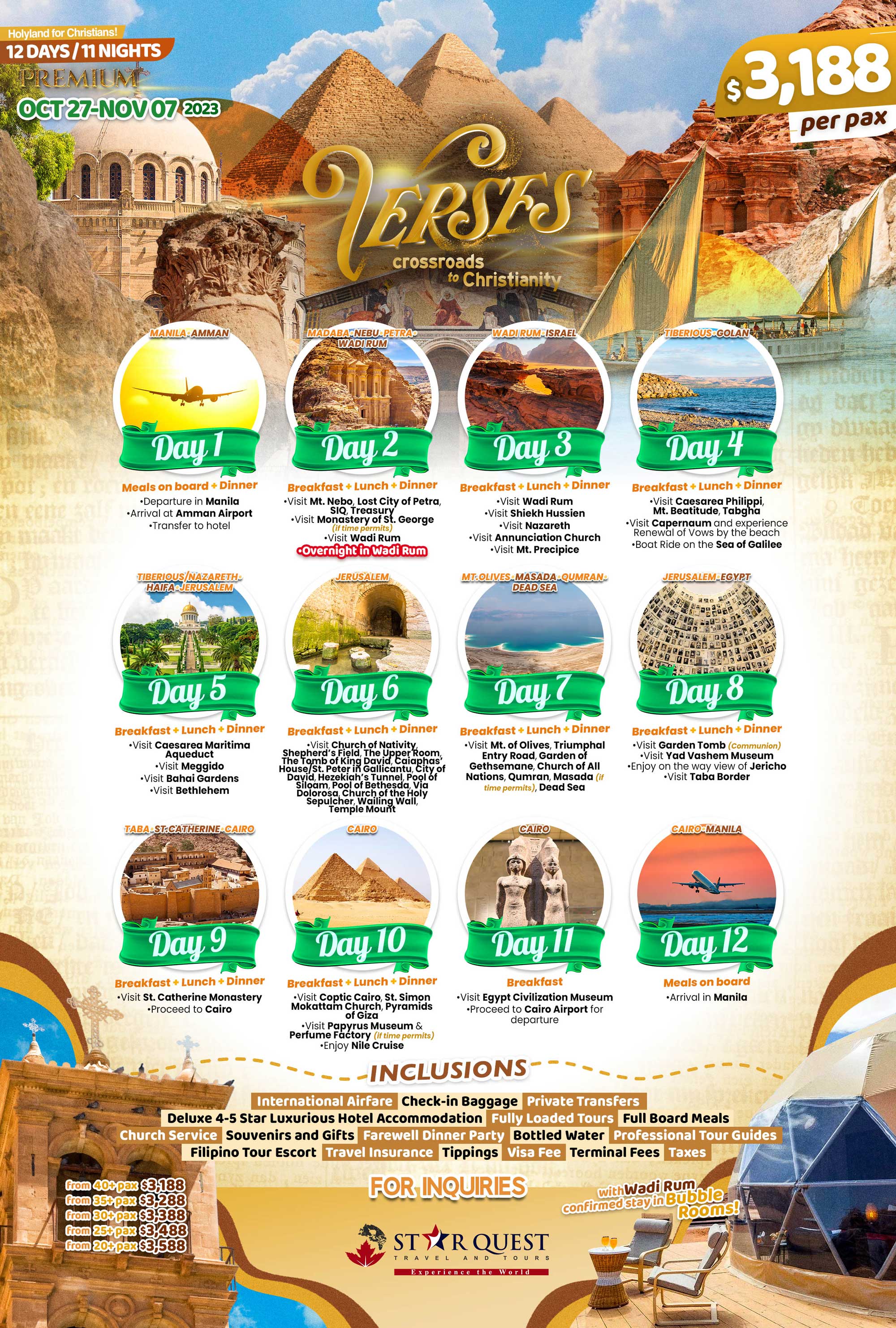 | VERSES Crossroads to Christianity (12D11N) | 3188 | USD | |